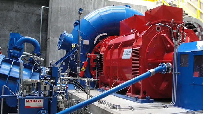 Turbina Kaplan y generador de 1.250 kVA provistos por Global Hydro Energy GmbH (Austria).